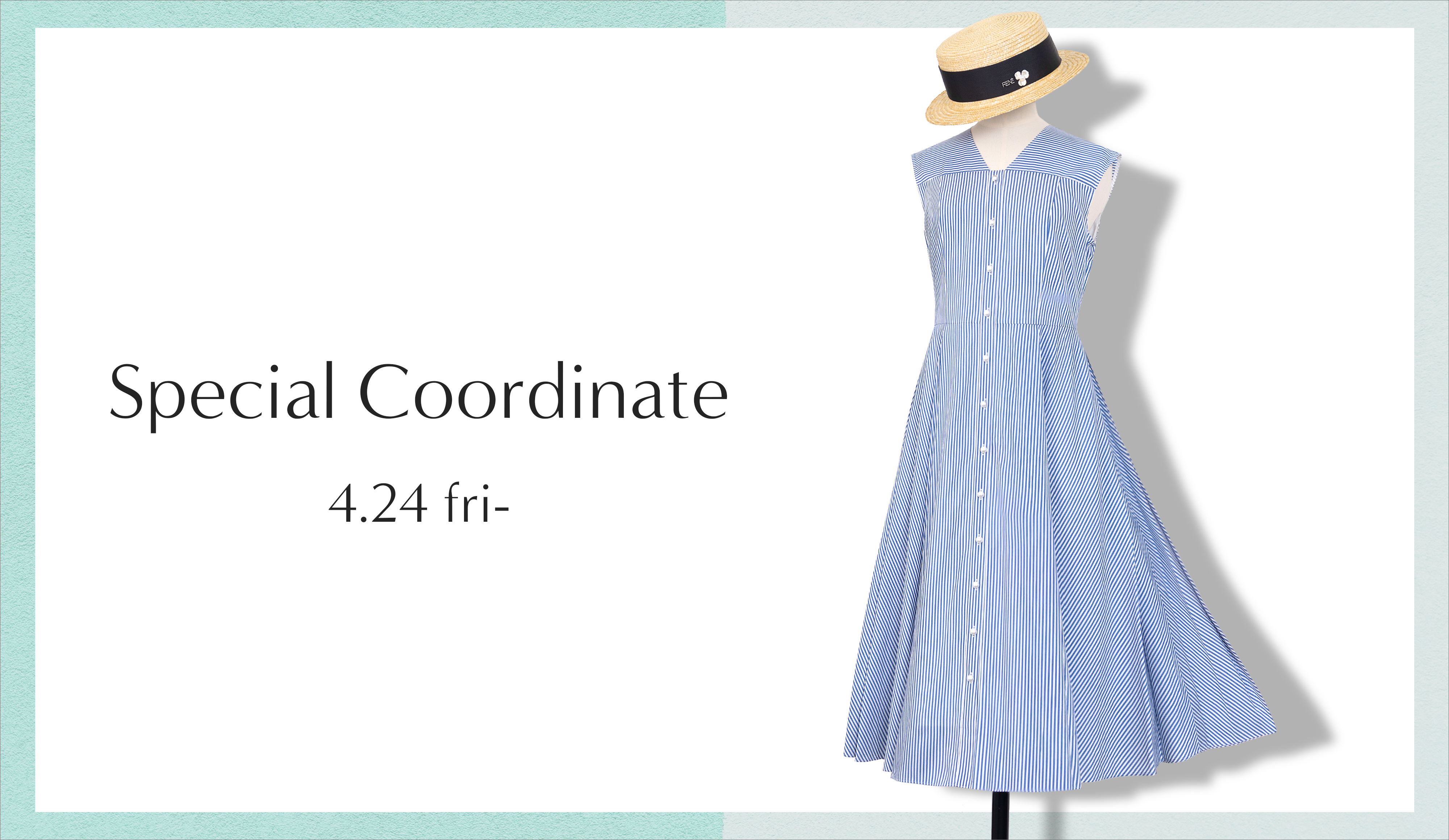 軽やかなストライプワンピースに、フェミニンなストローハットを合わせたスペシャルセット。