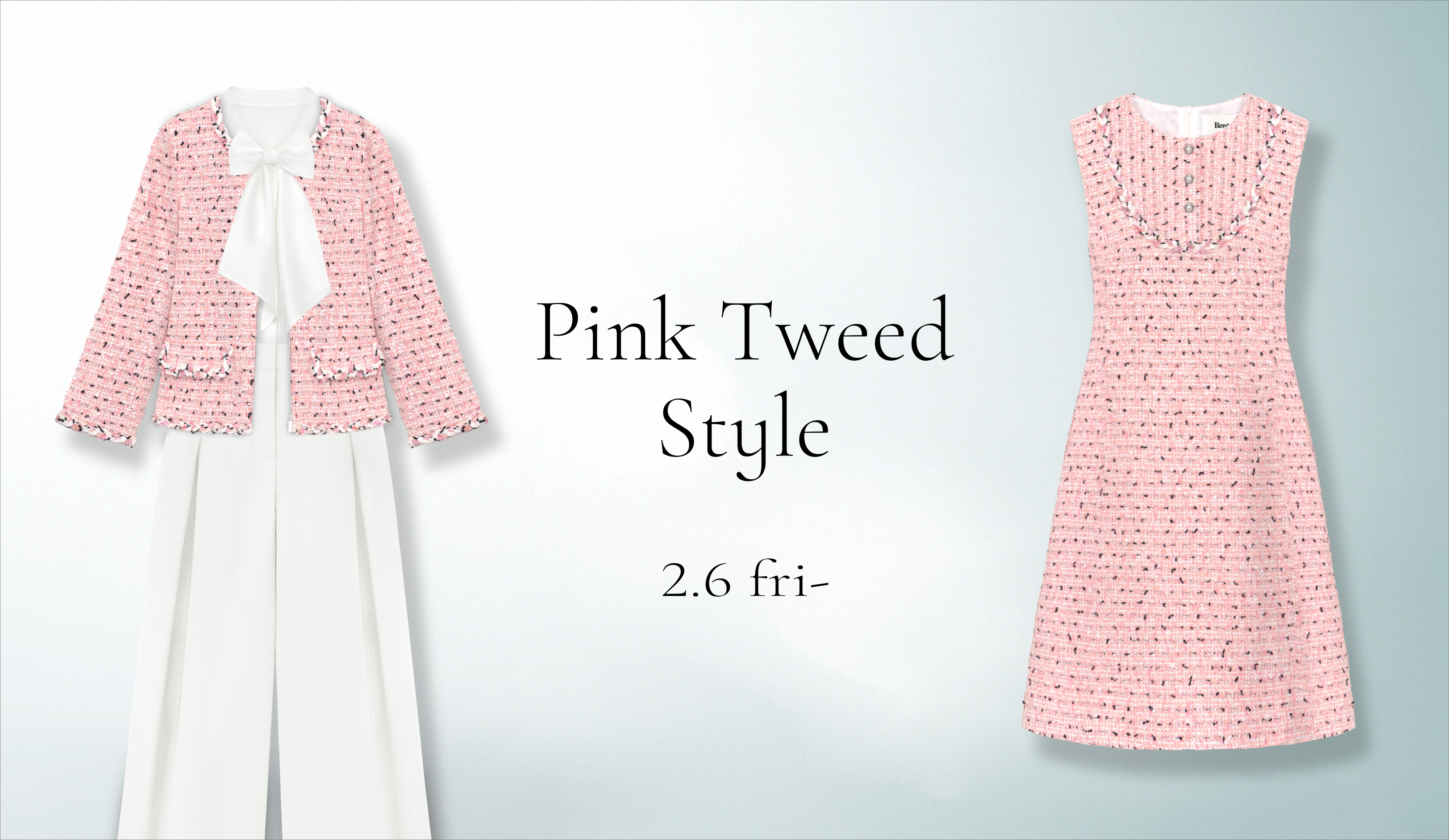 本日2月6日(金)よりルネ オンラインショップにて、暖かな春が待ち遠しくなる“Pink Tweed Style”が登場いたします。