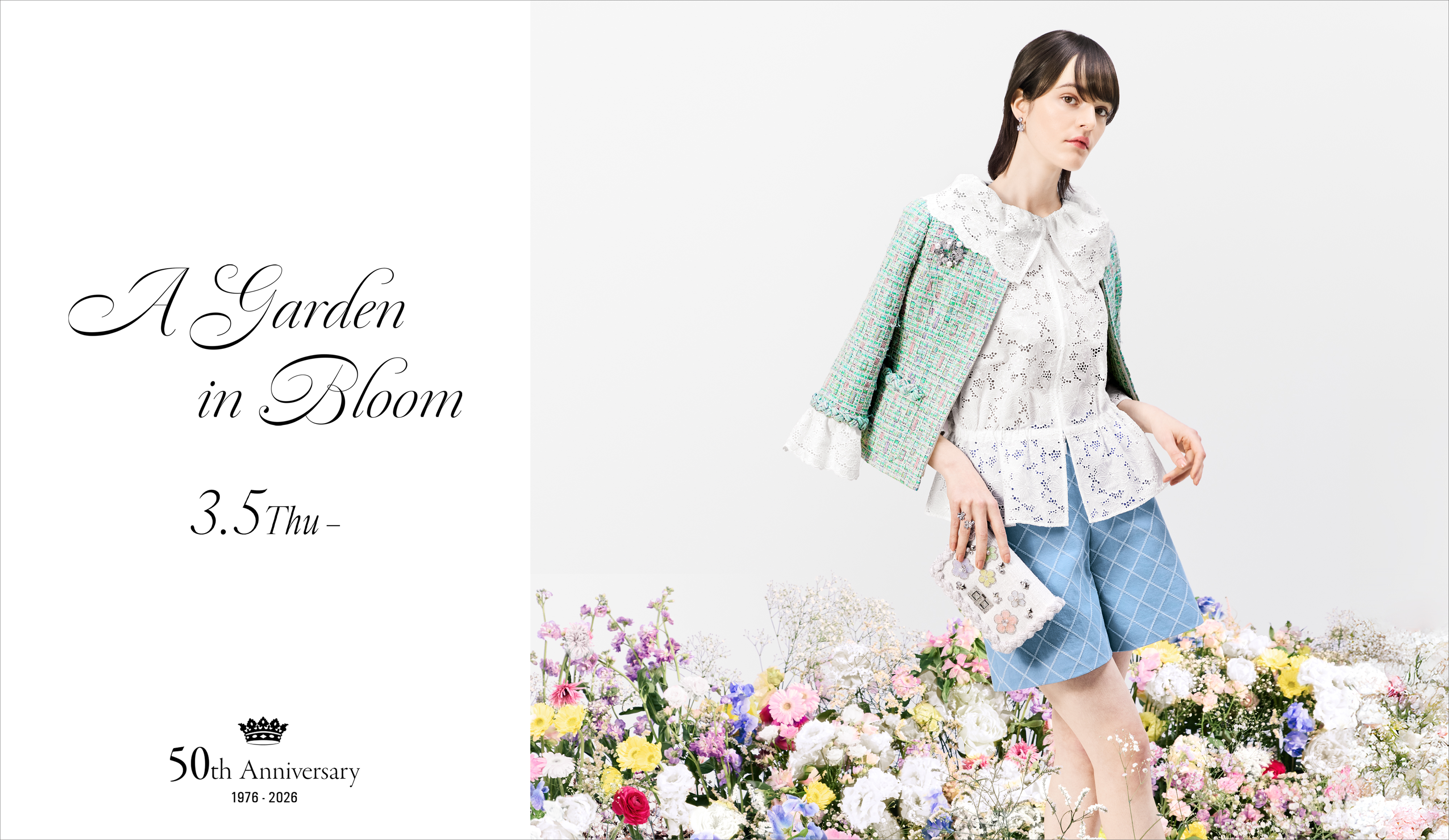 春爛漫のツイードにレースやウォッシュデニム、愛らしいプリントを重ねて。