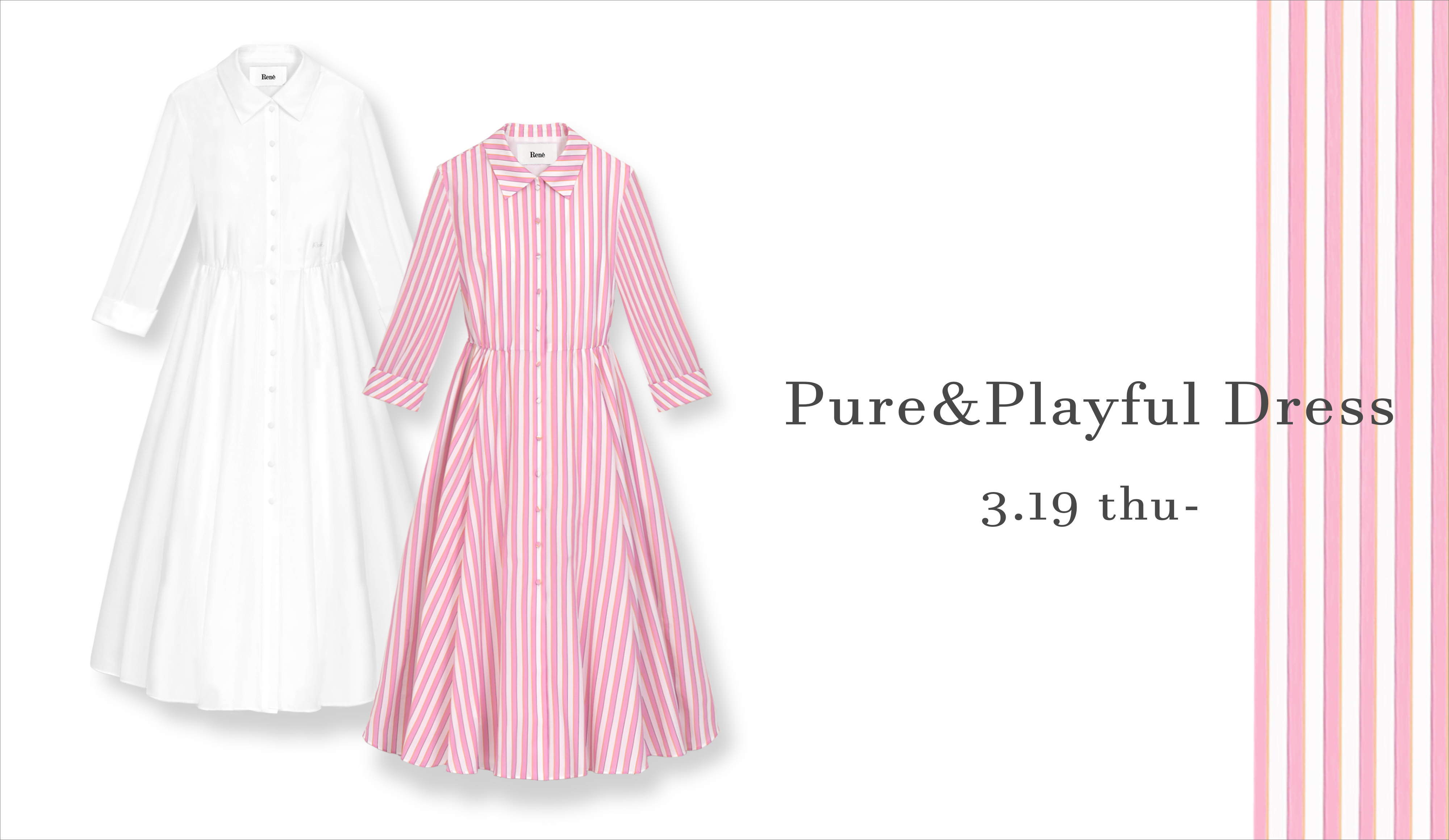 本日3月19日(木)よりルネ オンラインショップにて、春を軽快に楽しむ“Pure&Playful Dress”を発売いたします。