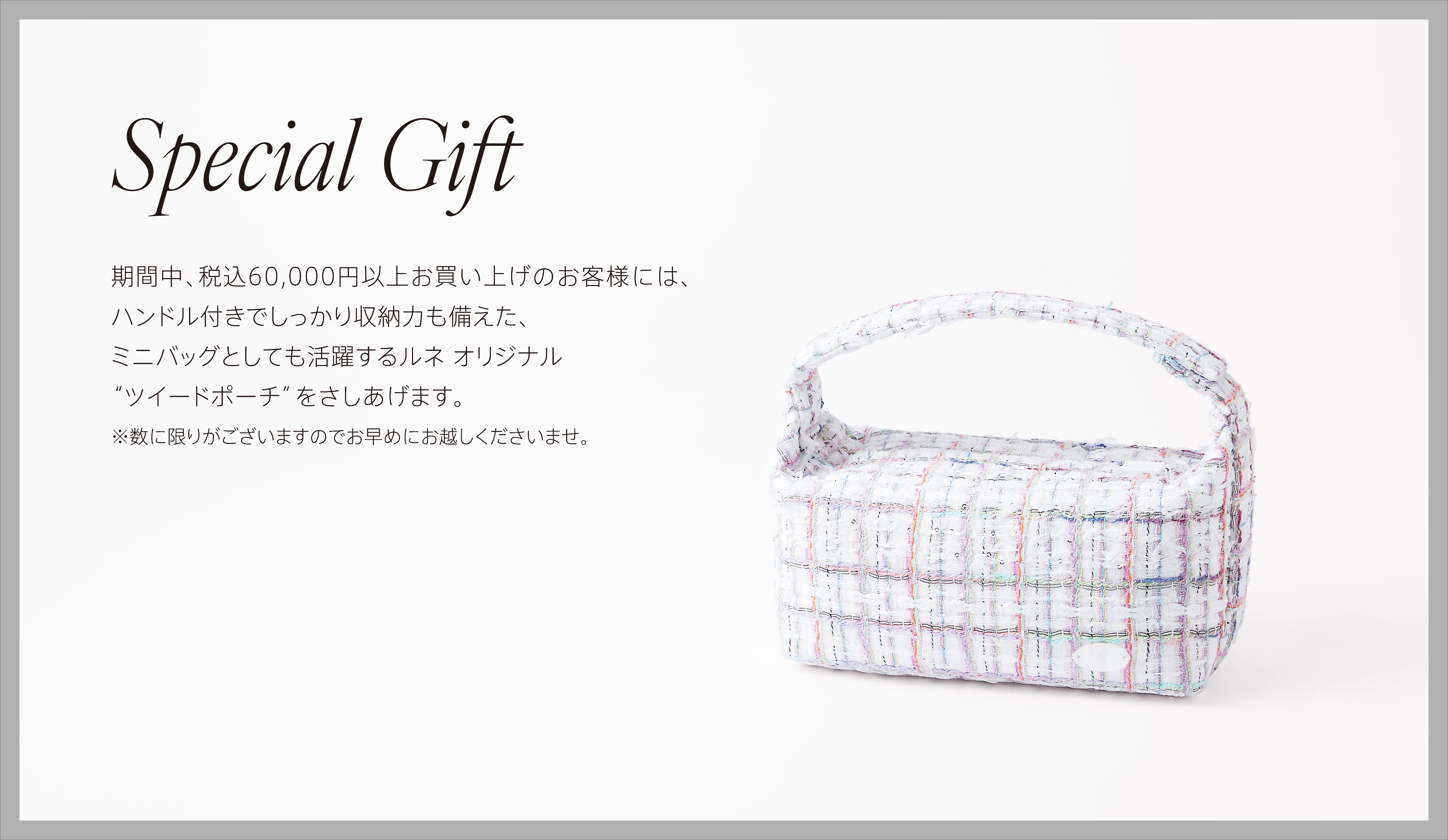 ピンク×イエローの華やかなルネ オリジナルのストライプ柄と、ロゴ刺繍がさりげないアクセントのベーシックカラータイプが登場。