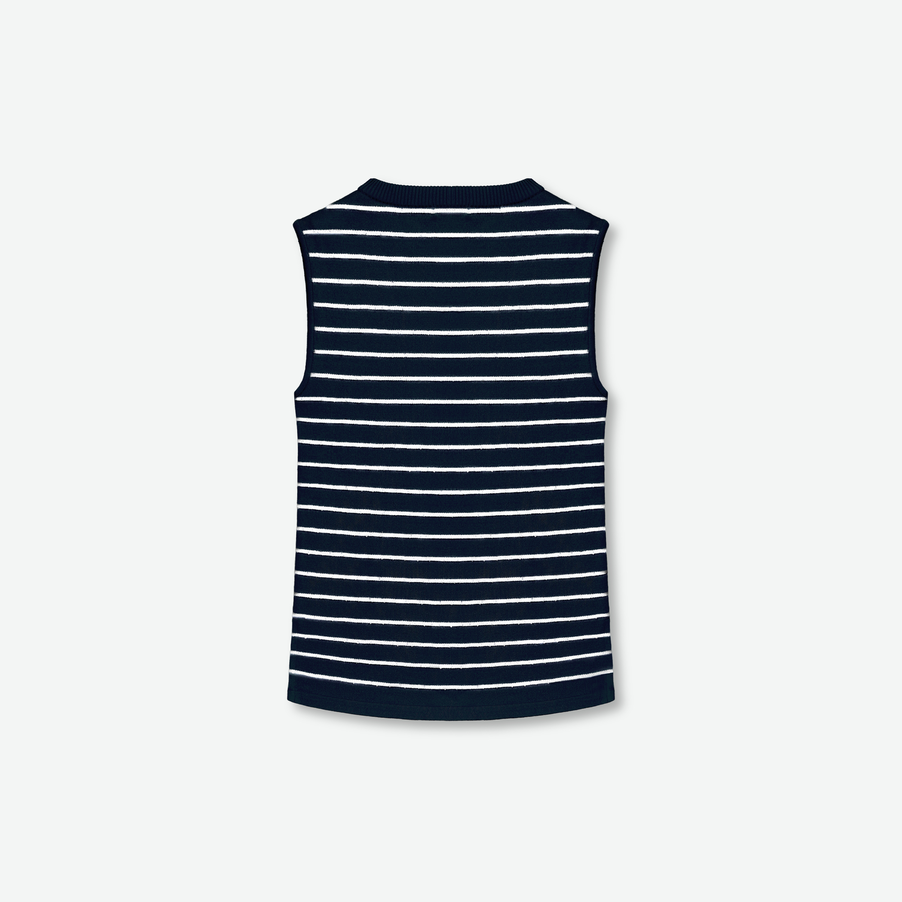 立体的なボーダー柄にスパンコールをあしらい、爽やかさに遊び心をプラスしたニットトップス。