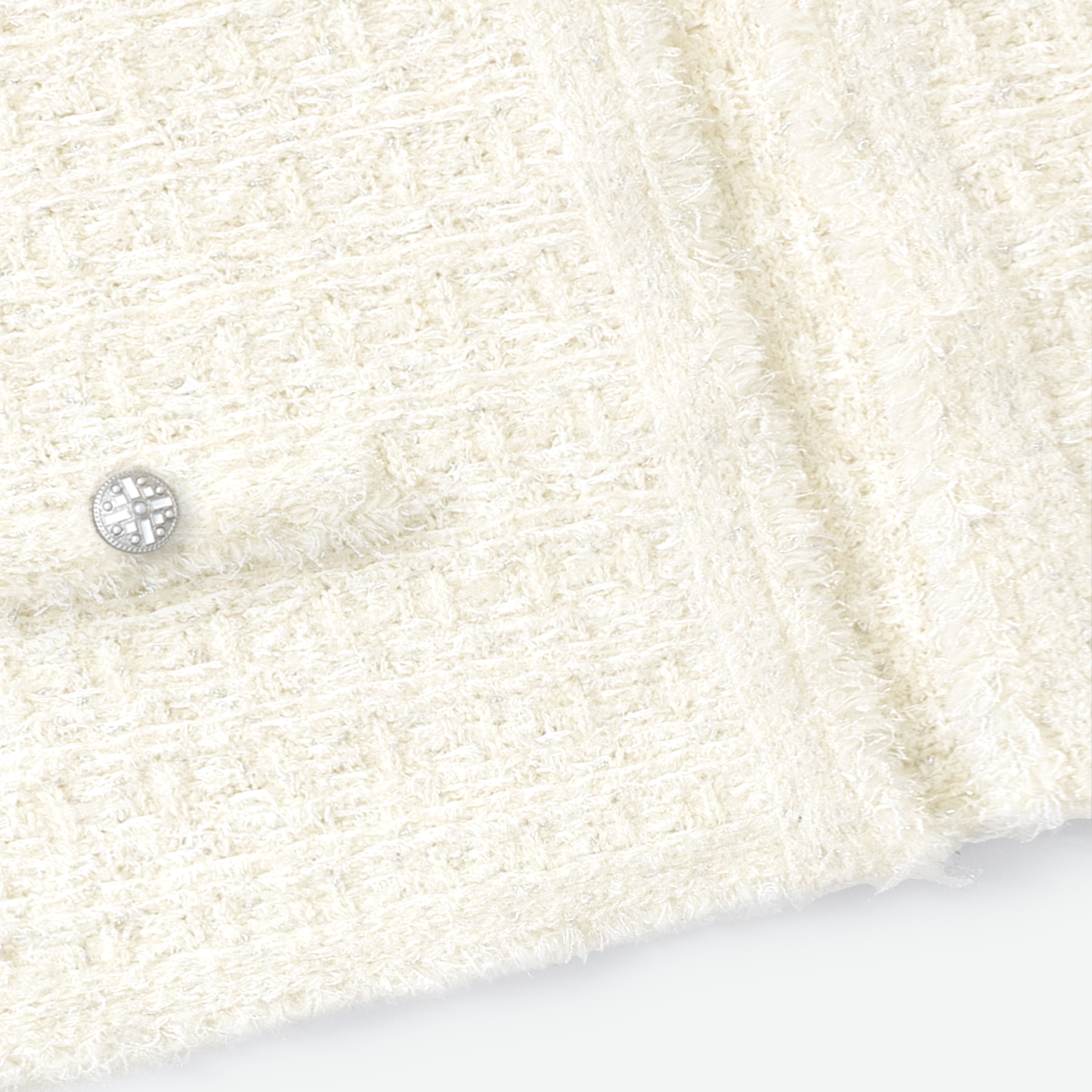 様々なファンシーヤーンを組み合わせて編み上げた、ルネならではのニットツイード。シルバーのラメ糸がきらめき、ホリデーシーズンらしい華やかを演出。